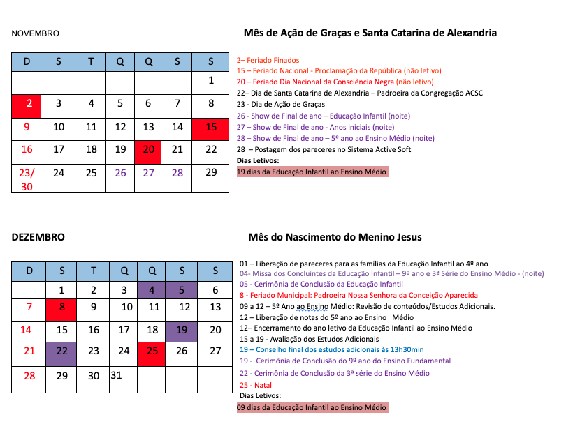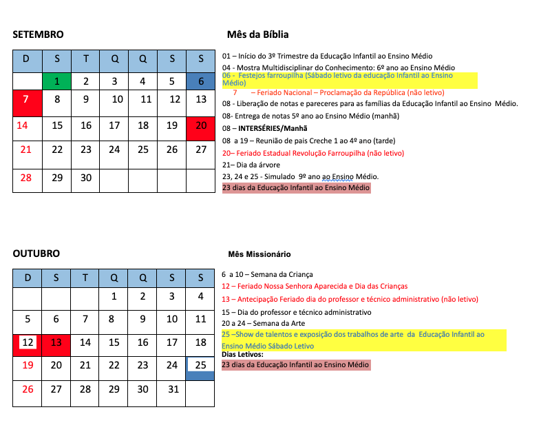 Calendário Escolar